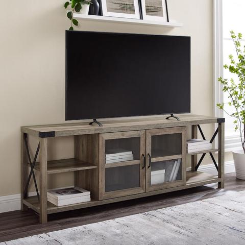 テレビコンソールキャビネットテレビテーブル2ガラスドア4開口部付きインダストリアルスタイルテレビスタンドエンターテインメントセンター