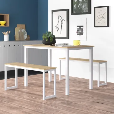 Juego de muebles de comedor de estilo Banco moderno de 3 piezas, 2 bancos largos y barra de desayuno para 4 personas, juego de cocina de comedor que ahorra espacio