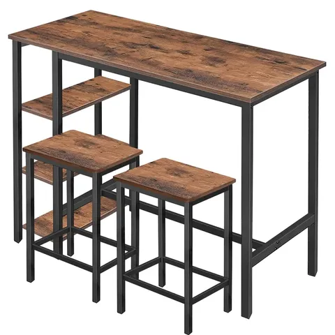Juego de comedor de 3 piezas con 3 estantes de almacenamiento profundos para colocar vajilla, tazas, aperitivos y vino 2 sillas Juego de mesa de bar que ahorra espacio