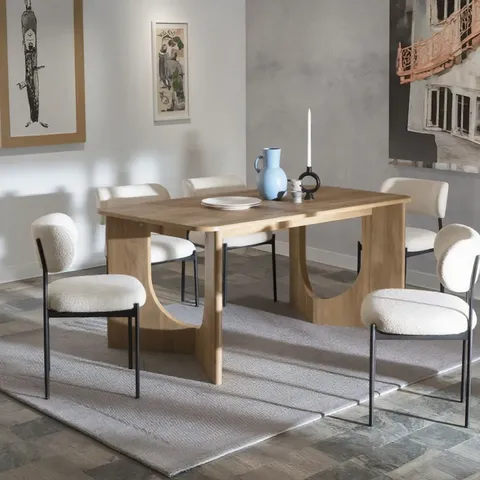 Mesa de comedor moderna contemporánea, mesa con efecto de mango con patas de estilo de arco contemporáneo para escritorio de recepción de hospital de salón
