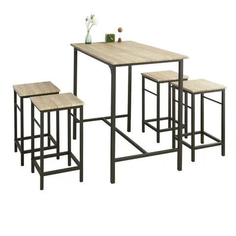 Juego de comedor de pub de 5 piezas con 1 mesa y 4 taburetes en patas de metal Mesa de bar y taburetes modernos