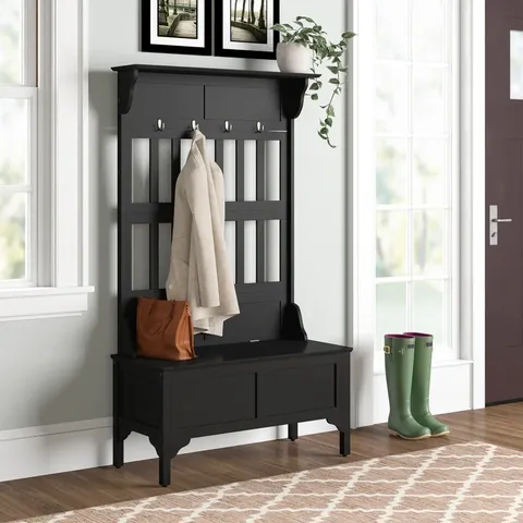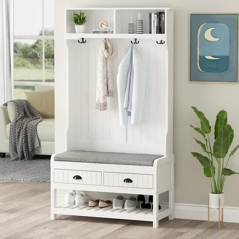 ชั้นวางเสื้อโค้ทไม้สำหรับห้องโถงกว้าง4ตะขอตู้เก็บรองเท้าสองชั้นโชว์สำหรับทางเข้าห้องนั่งเล่น