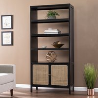 ตู้เก็บรองเท้าไม้5ชั้นทันสมัยพร้อมชั้นวางแบบปรับได้และประตูหวายสานสำหรับทางเข้า