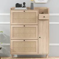 Homefield ตู้เก็บรองเท้าไม้แบบพับได้, ชั้นวางรองเท้าแบบ3ลิ้นชัก1ประตูทางเข้าชั้นเก็บรองเท้าทันสมัย